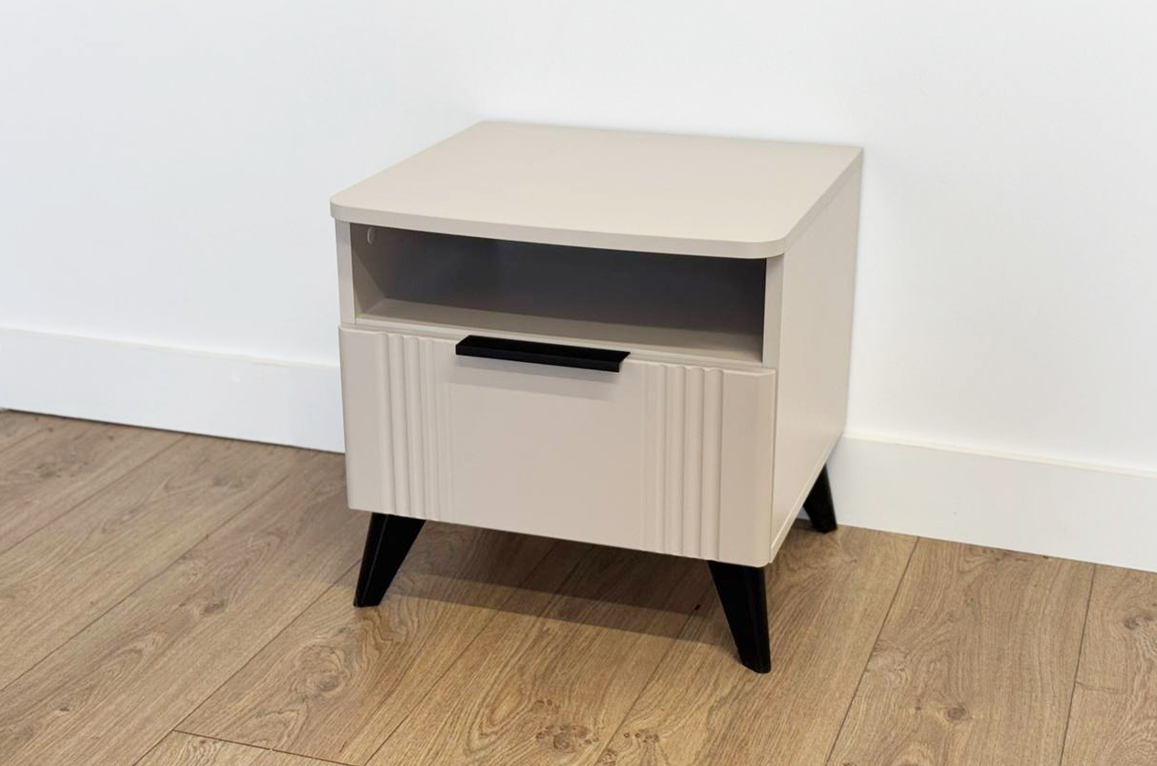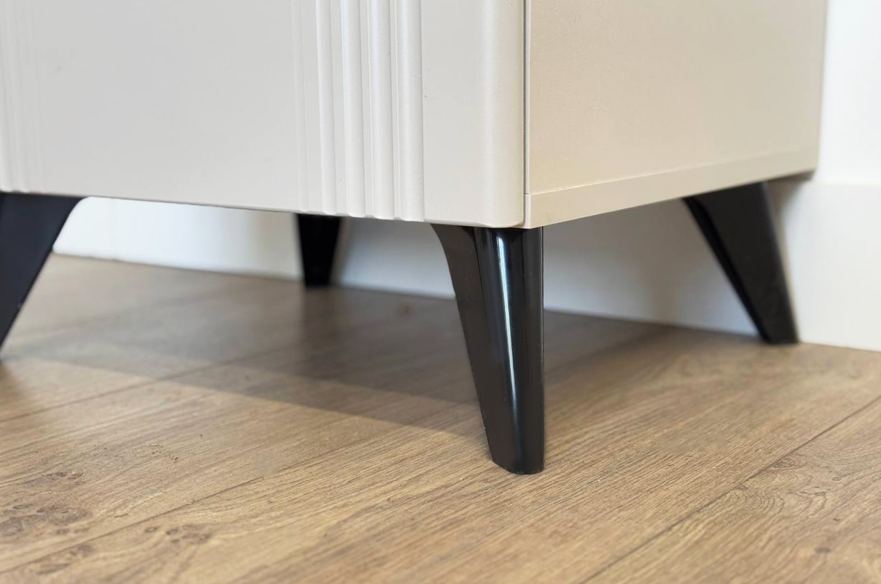 · Подойдет к любому интерьеру: Нежный бежевый цвет и элегантный контраст с черными ножками делают тумбу стильным акцентом в любом интерьере.