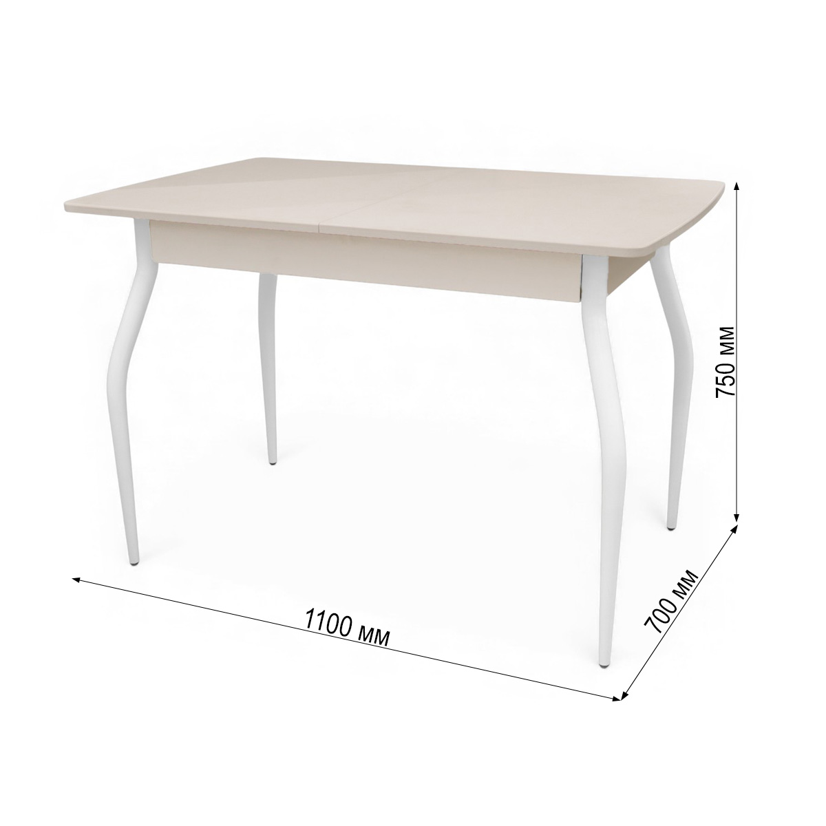Стол Уют 3 1100(+390)*700*750 МДФ Кашемир/Кашемир /опора №1 Белый (D40)