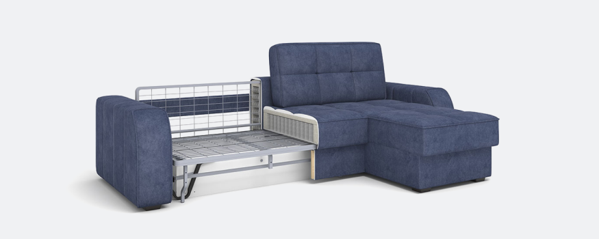 В основе модели — усиленный металлокаркас из конструкционной стали с увеличенной гарантией. Он рассчитан на повышенные нагрузки: до 200 кг на посадочное место и до 300 кг на спальное место.