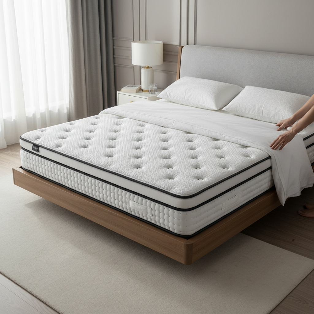✓ Глубокая ортопедическая поддержка: Комбинация мощного ППУ (6 см) и независимых пружин создает идеально ровную, упругую поверхность для здоровья позвоночника.