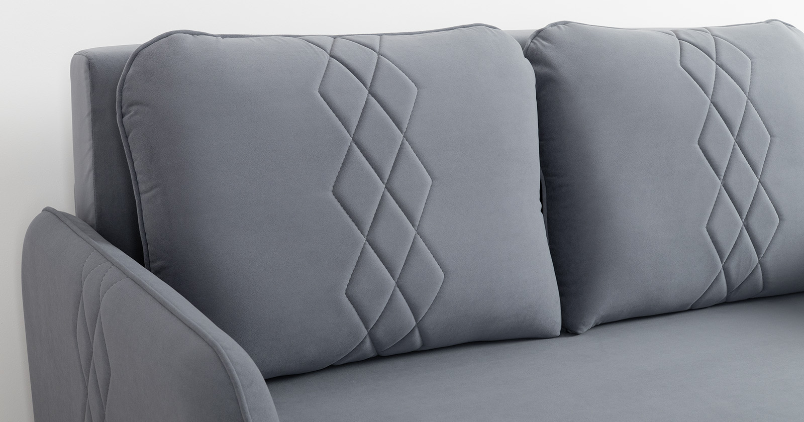 Стильный и практичный дизайн: Лаконичная форма и изящная декоративная отстрочка, подчеркивающая фактуру роскошного велюра, позволяют дивану гармонично вписаться как в детскую, так и в современную гостиную.