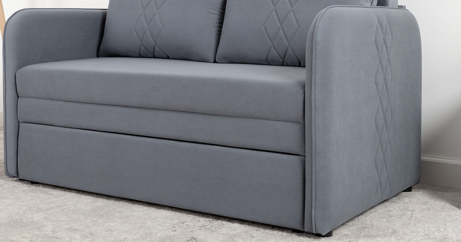Полноценное спальное место: Простой механизм трансформации за несколько секунд превращает диван в удобную кровать для ежедневного сна гостей или ребенка.