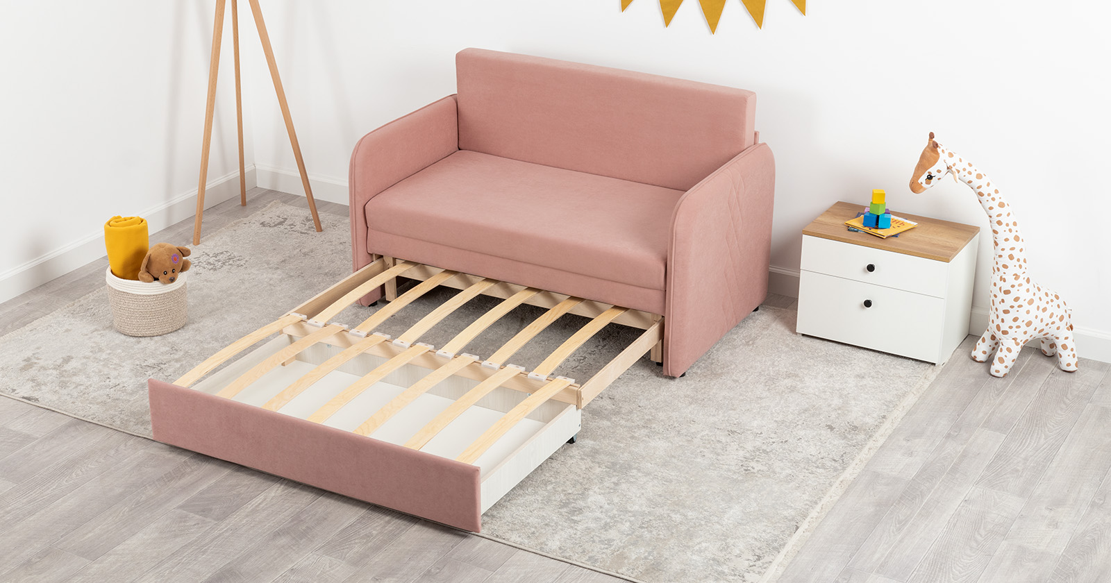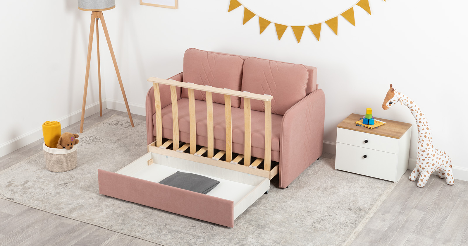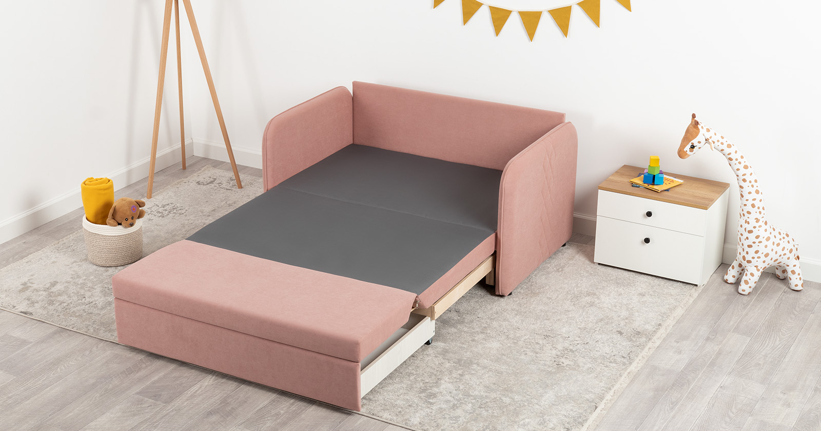 Этот стильный и практичный диван создан специально для небольших пространств: детских комнат, малогабаритных гостиных или уютных уголков квартиры. Несмотря на свои скромные размеры, он легко трансформируется в полноценное и комфортное спальное место для ребенка или подростка, совмещая в себе функции уютного кресла днем и удобной кровати ночью.