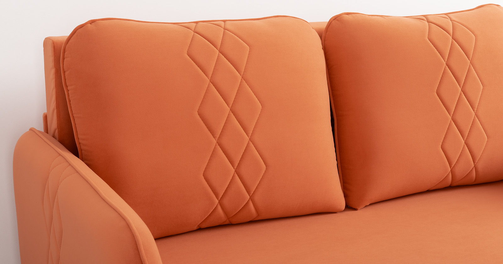 Стильный и практичный дизайн: Лаконичная форма и изящная декоративная отстрочка, подчеркивающая фактуру роскошного велюра, позволяют дивану гармонично вписаться как в детскую, так и в современную гостиную.