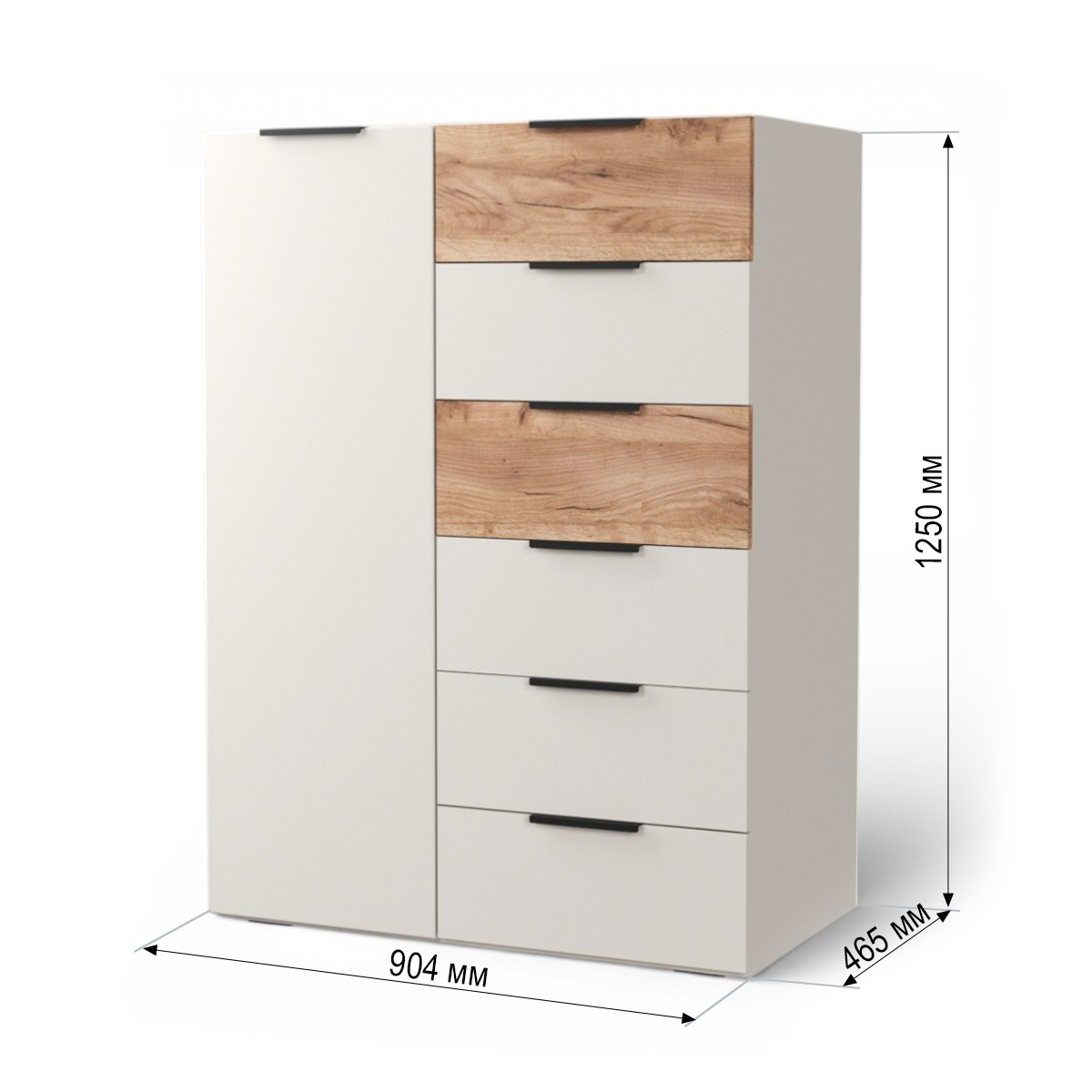 —Комод Севиль 1 дв.6 ящ/Кашемир/Дуб крафт