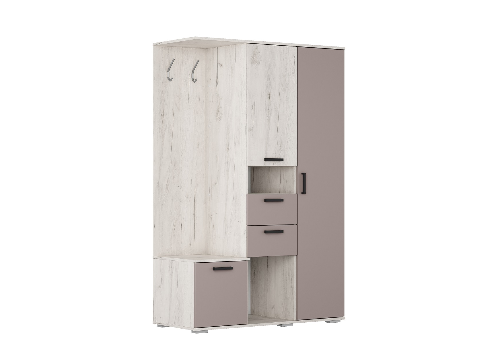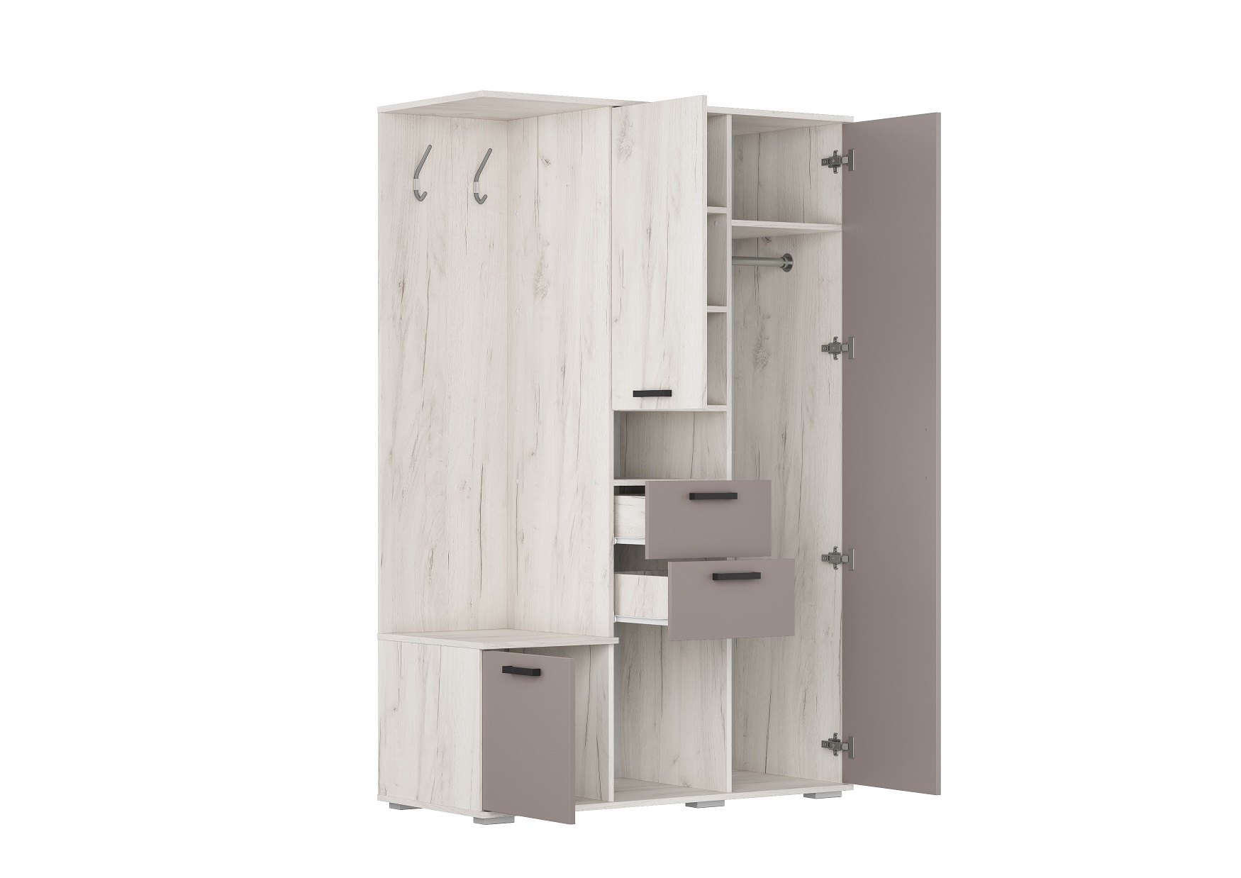 УЛЬТРА ПР-20 Прихожая (1200*520*1860) Глиняный Серый/Дуб Крафт Белый