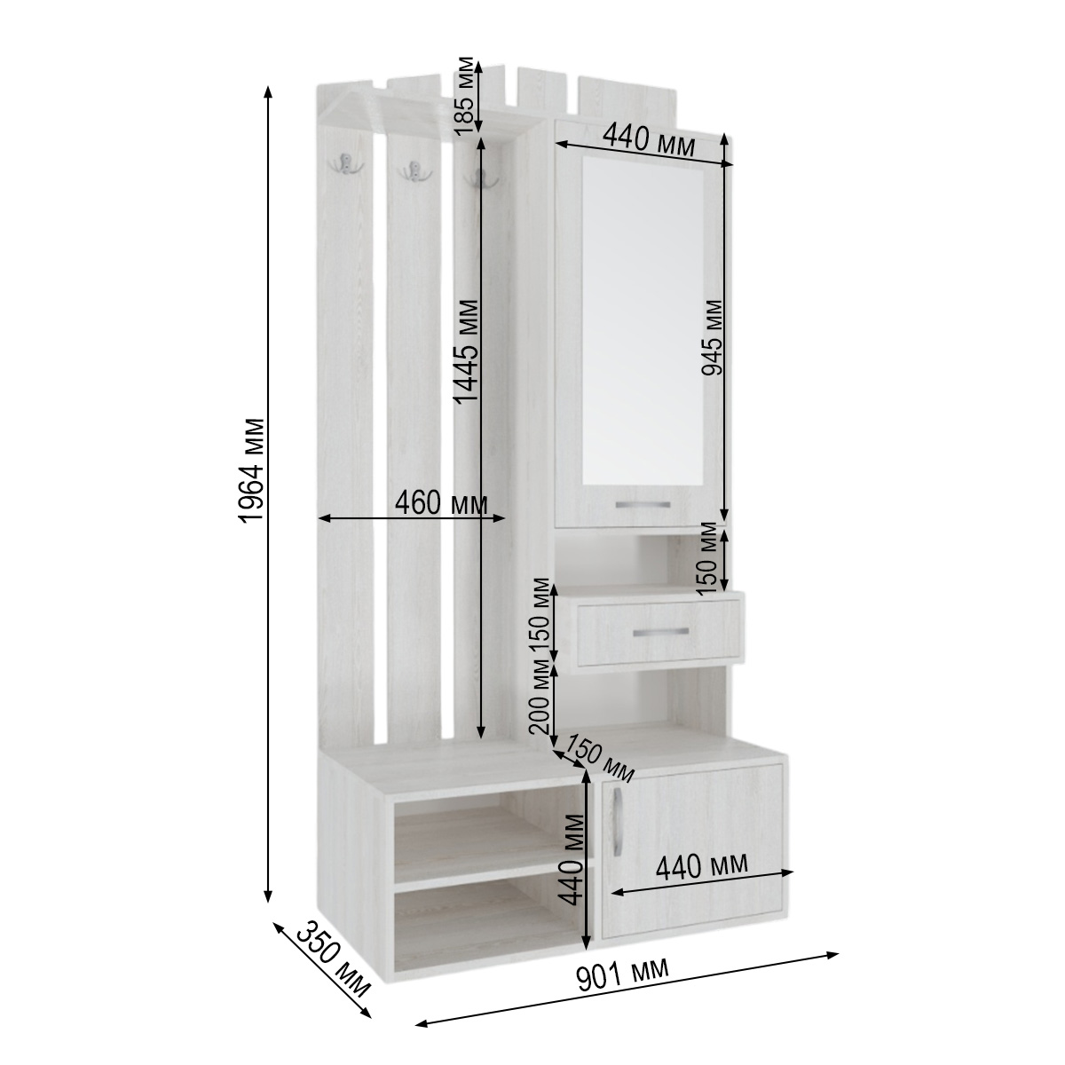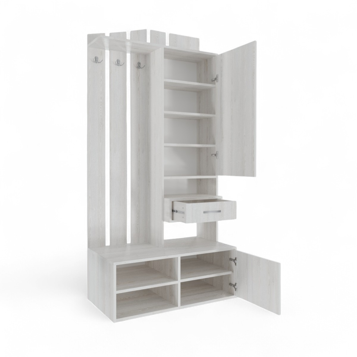 ✓ Выдвижной ящик: Практичный выдвижной ящик позволит удобно хранить мелкие предметы и аксессуары, поддерживая порядок в прихожей.